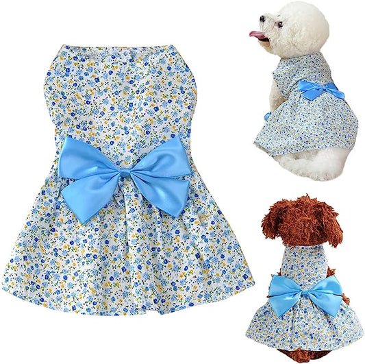 Dog Dress- Puppy Floral Princess Dresses, Dog Dress Bowknot Tutu Skirt, Thin Cute Pet Summer Clothes Apparel for Small Medium Girl Dogs Cats Kitten, Dog Flower Sundress Doggy Outfit Costume