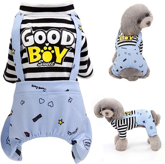 Dog Clothes Striped Onesie Puppy Shirt, Cute Dog Pajamas Bodysuit Coat Jumpsuit Overalls Soft Comfort Pjs Apparel Costume, Dog Outfit for Small Medium Large Dogs Cats Kitten Boy Girl